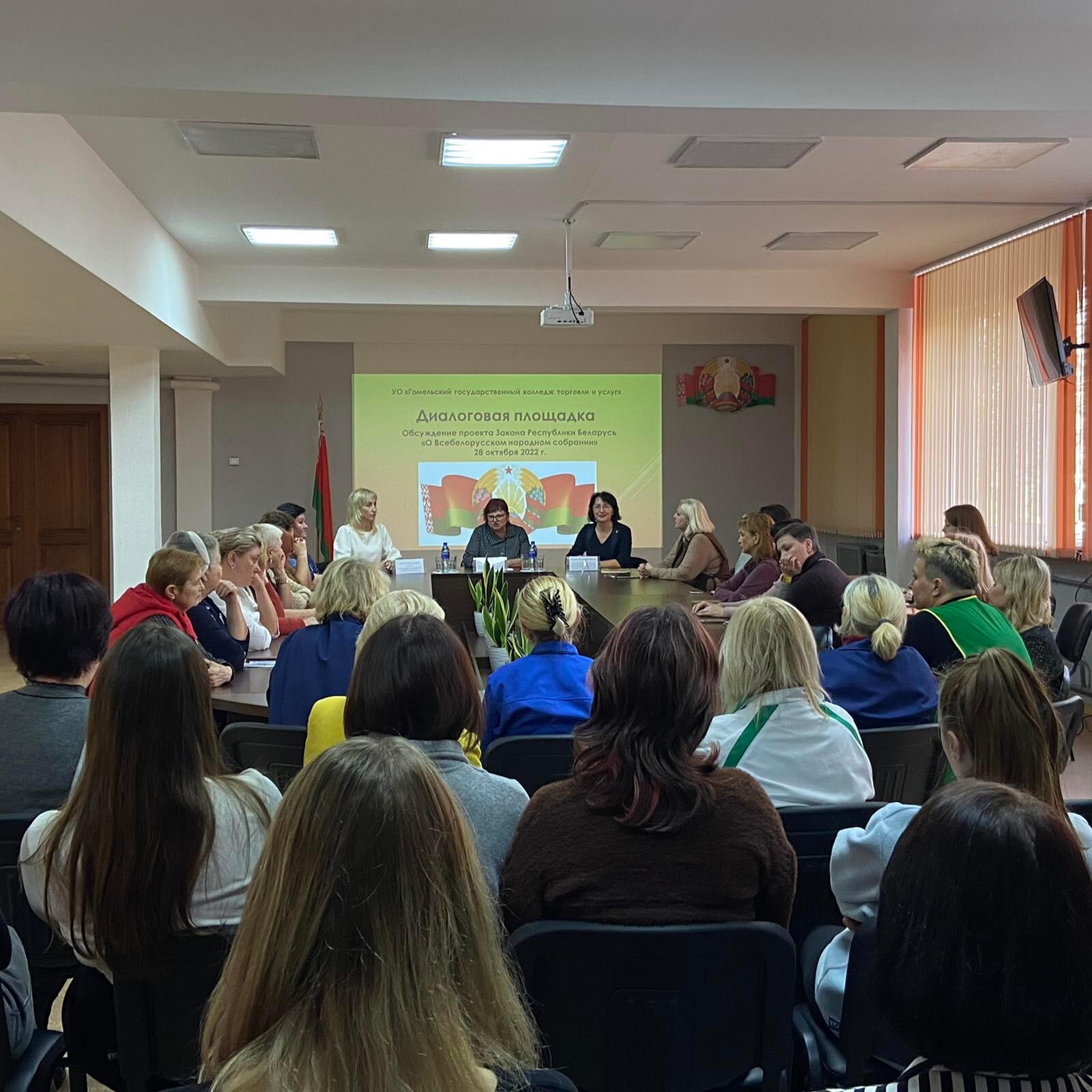 Мероприятие организовали сегодня, 28 октября, с участием директора колледжа Татьяны Гусак, председателя Гомельской областной организации Белорусского профсоюза работников торговли, потребительской кооперации и предпринимательства Татьяны Волынец, педагогических работников и учащихся. Спикером диалоговой площадки выступила председатель Гомельского городского объединения организаций профсоюзов Маргарита Ходиченко. – Живое обсуждение законопроекта о Всебелорусском народном собрании – приоритетный формат наших встреч с […]