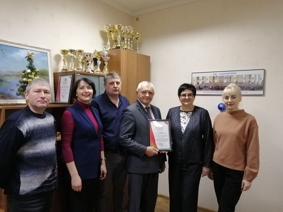 Коллектив Гомельской областной организации Белорусского профсоюза работников торговли, потребительской кооперации и предпринимательства поздравляет главного правового инспектора труда Николая Талейко с вручением заслуженной награды – Почетной грамоты главного управления торговли и услуг Гомельского областного исполнительного комитета за многолетний добросовестный труд, защиту социально-экономических прав и законных интересов членов Белорусского профсоюза работников торговли, потребительской кооперации и предпринимательства.
