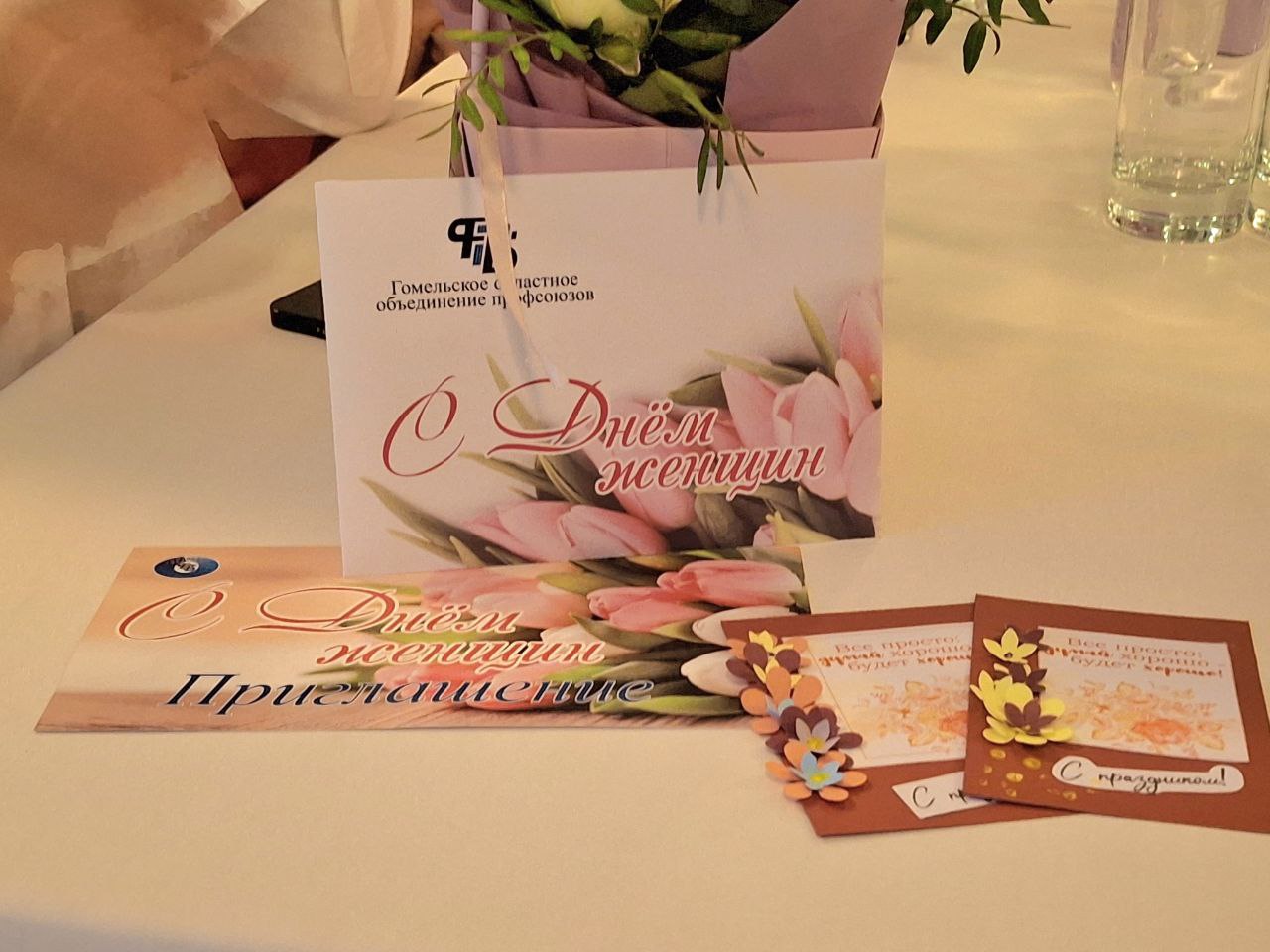 Еще с порога каждой участнице вручали корзинку с цветами — символом весеннего настроения и признательности от организаторов, Гомельского областного объединения профсоюзов. Это — символичная благодарность женщинам за труд, заботу и вклад в развитие региона.